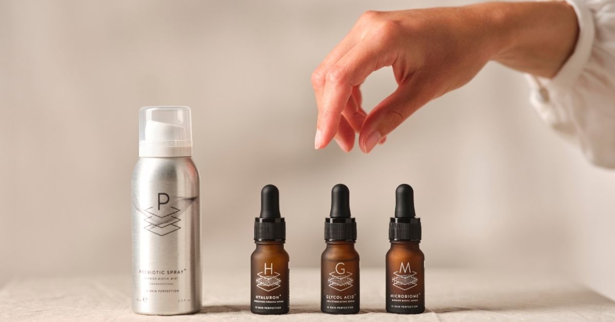 Wat serum layering bij IK Skin Perfection uniek maakt is dat we aanraden om een prebiotic spray op je gezicht te nevelen voor het aanbrengen van de serums. Door deze extra handeling uit te voeren worden de serums nog beter opgenomen in de huid en kunnen de serums nog beter hun werk doen.